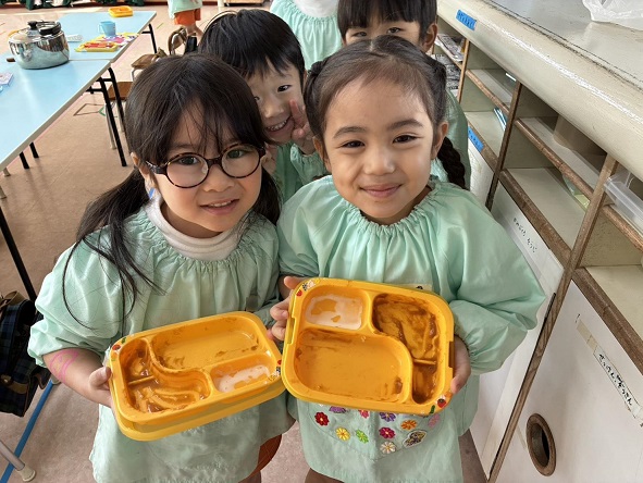 「 そうなんです~。 ホントに良かったです。 お昼の時間は、 今までけっこう苦労してたんですけど、 きょうは おともだちと一緒に 楽しく給食が食べられて 本人も自信がついたと思います。 」