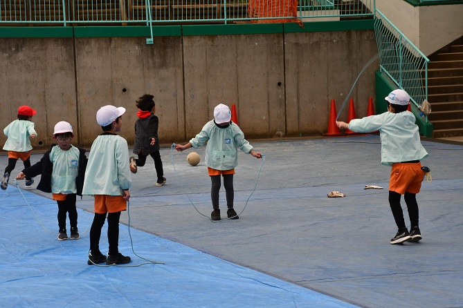 サッカーだけじゃなくて、 なわとびしてる子もいれば、 しっぽとりをしてる子もいました。