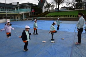 「 〇〇〇はー、 見て! 」 と言うのは なわとび練習中の男の子。