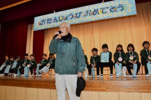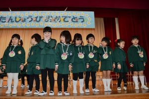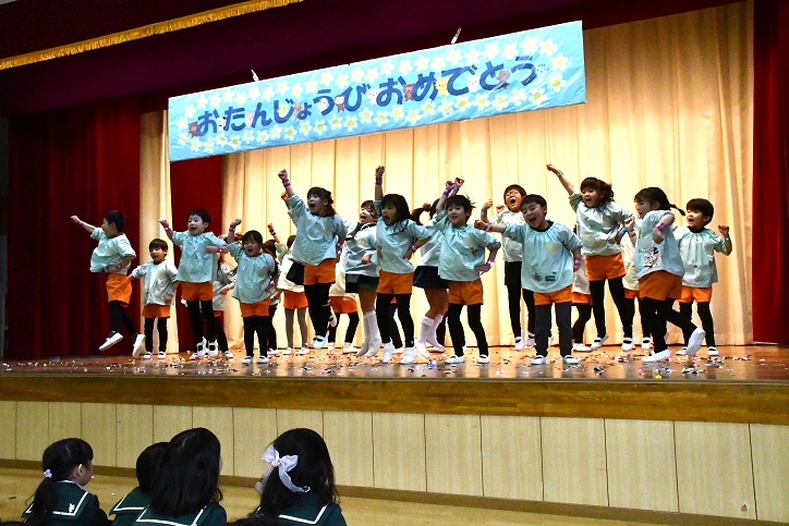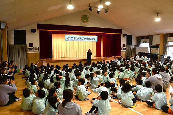 きょうの 誕生日会では、 主役の18人のお誕生日さんを みんなで祝福しました。