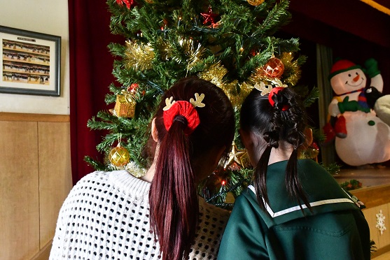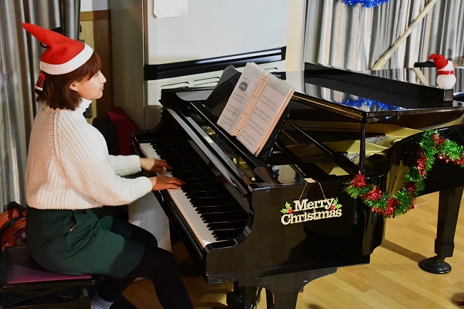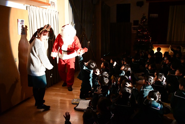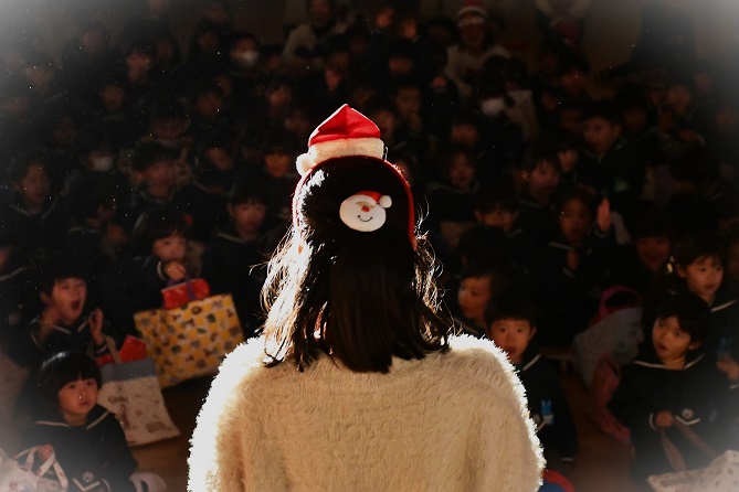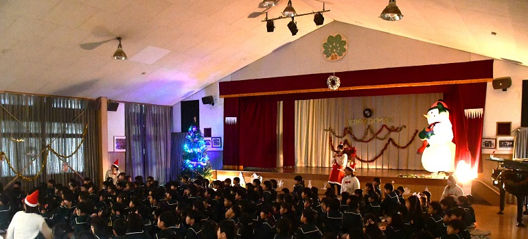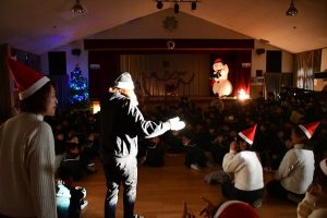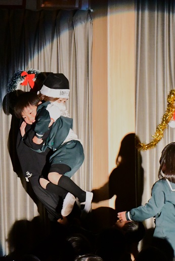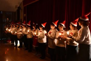 「 きよしこの夜 」 のピアノの音色に合わせて登場する先生たちのクリスマスキャンドル