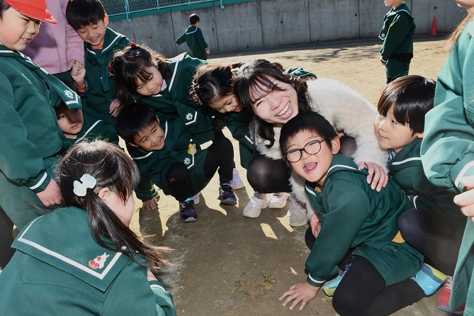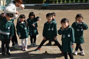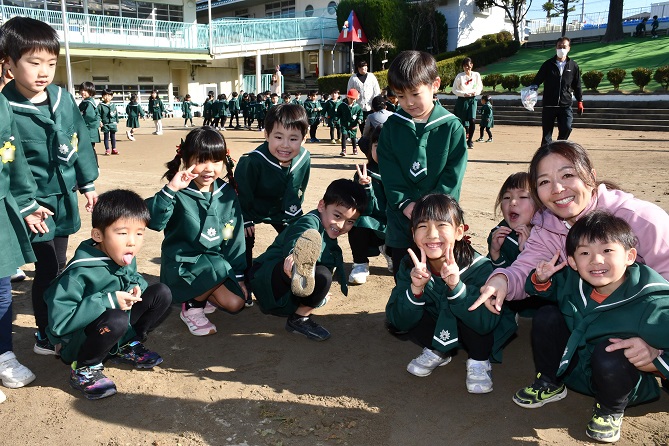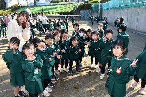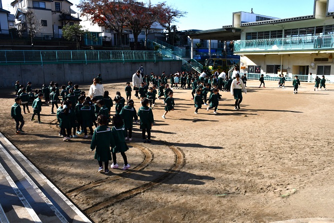 園庭は、 トナカイのそりの跡や 〇〇〇を見ている子供たちで賑わっていました。