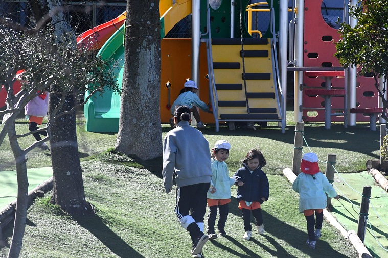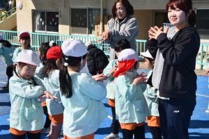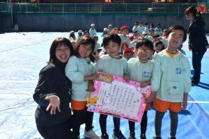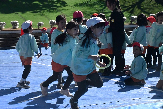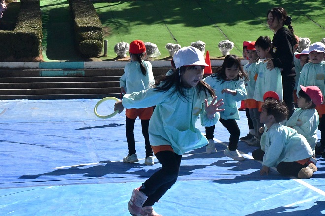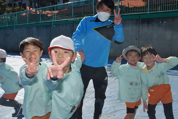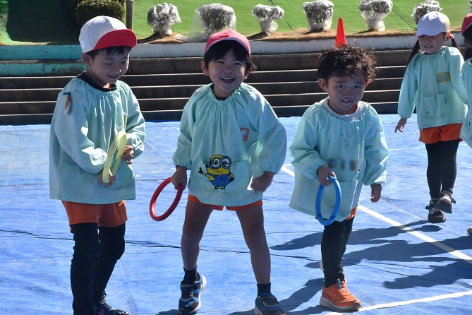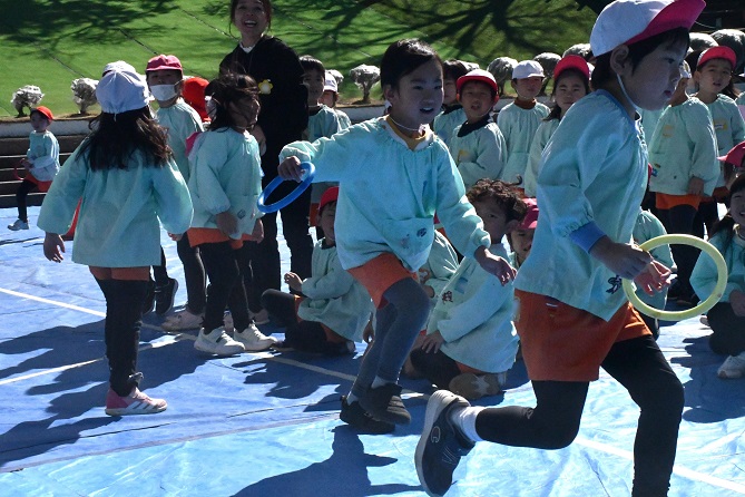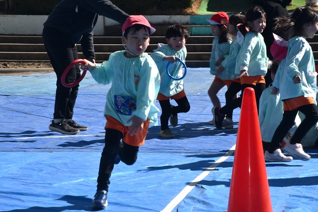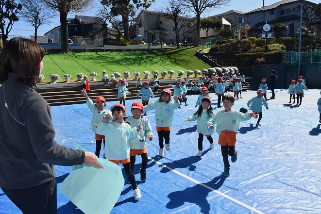 そう言って、 少しして 年長さんの 2本立てのゲーム大会が気になり、 園庭に向かいました。