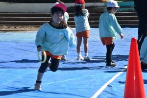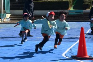 年長さんの リレー大会。