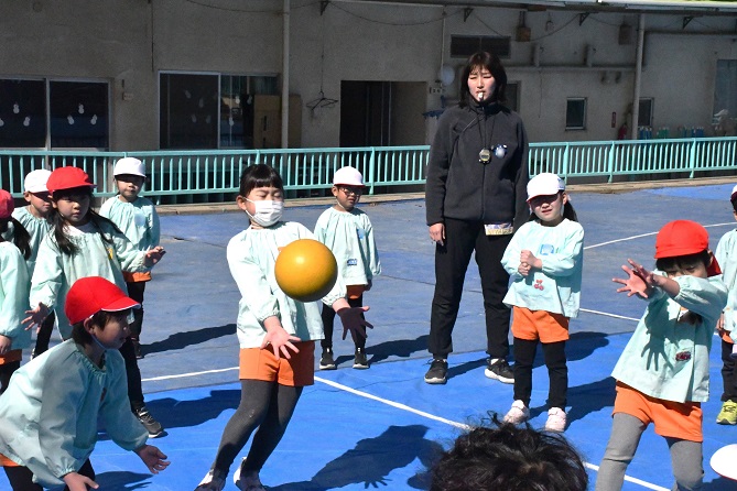 こちらは、 再び 園庭の年長さん。