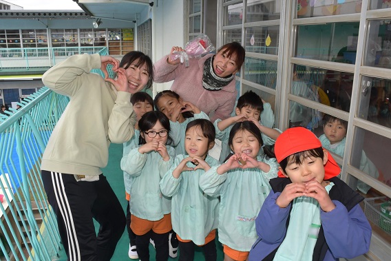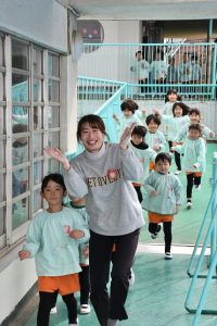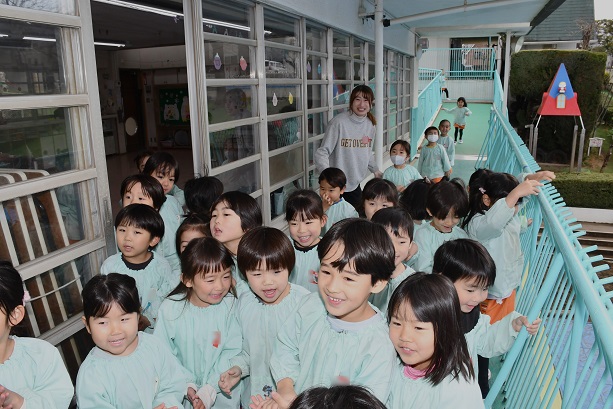 幼稚園ならではの、 かわいい光景です。