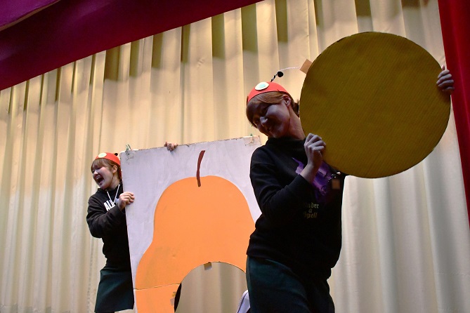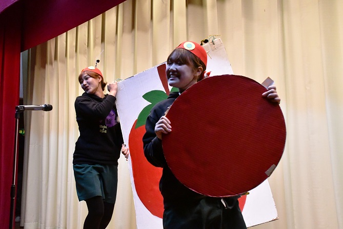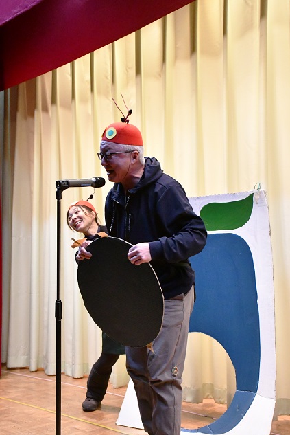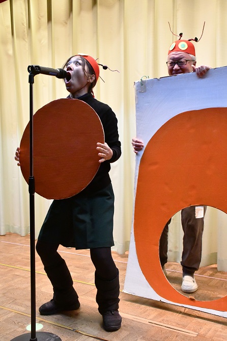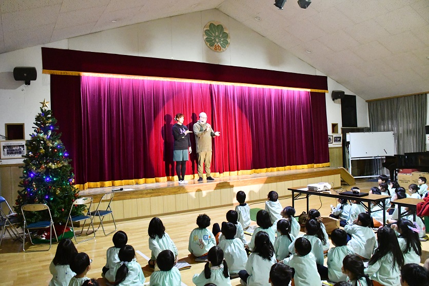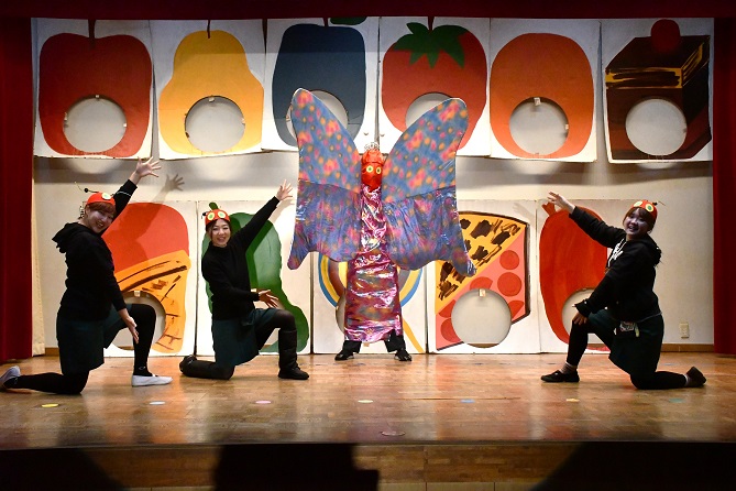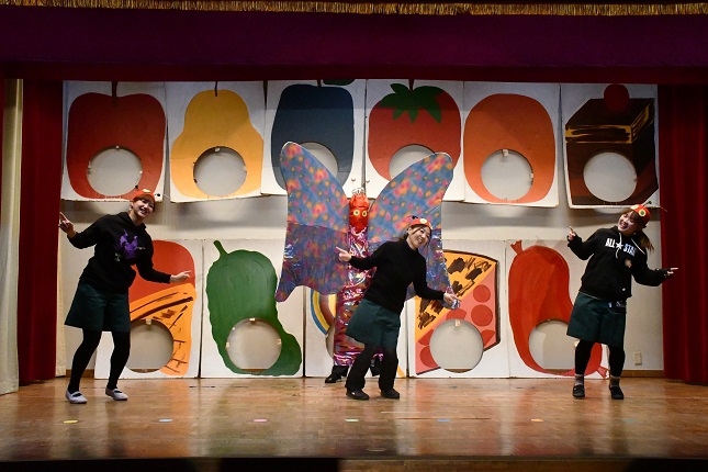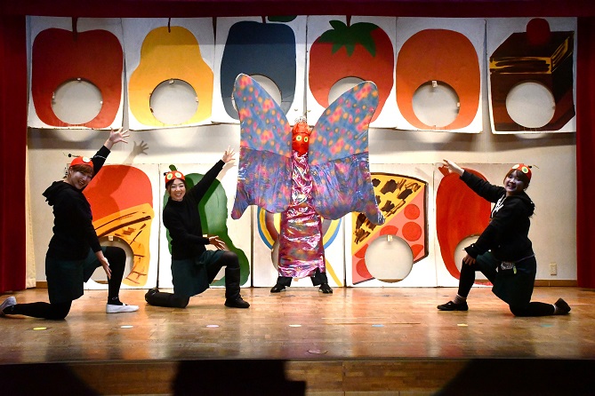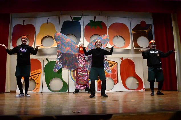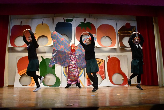 本園では、 「 年長組英語遊びクリスマスバージョン 」 のプログラムに、 はらぺこあおむしの物語を導入し、 長年に渡り 舞台で披露しています。