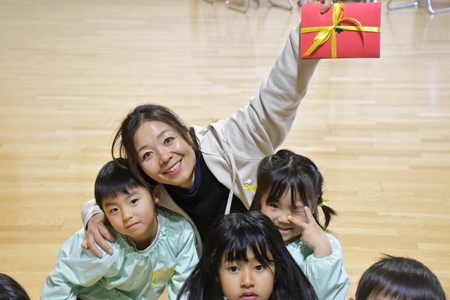 年長さんがサンタさんからのお手紙を受け取り、