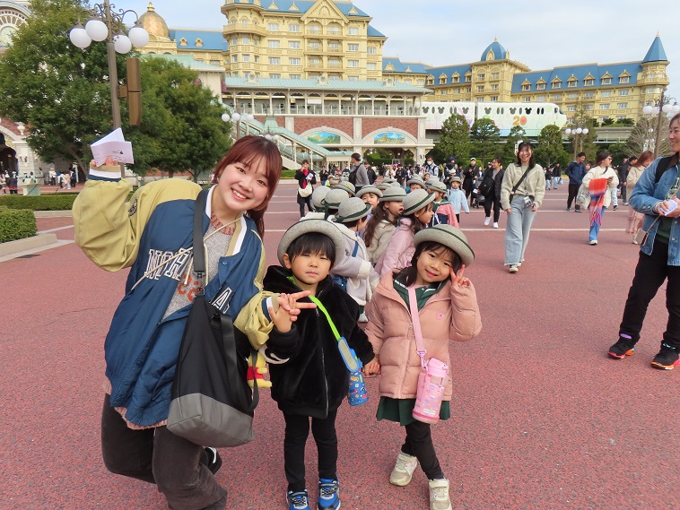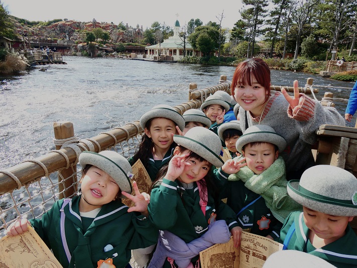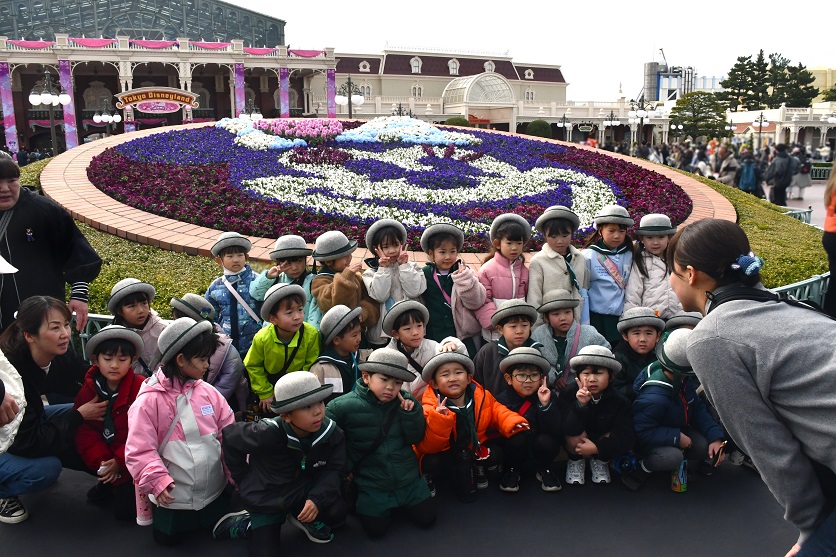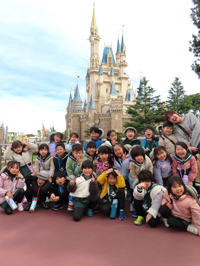 遠足でディズニーランドに行ける幸せに恵まれた八柱幼稚園の良い子たち。