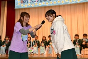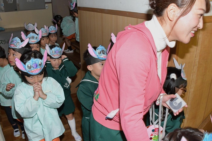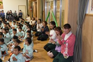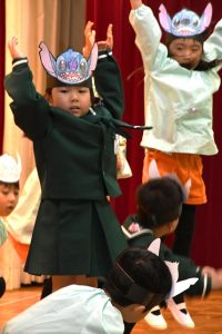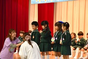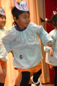 ステージを降りて 会場に出てくる子供たち。