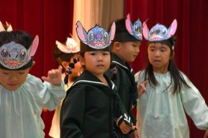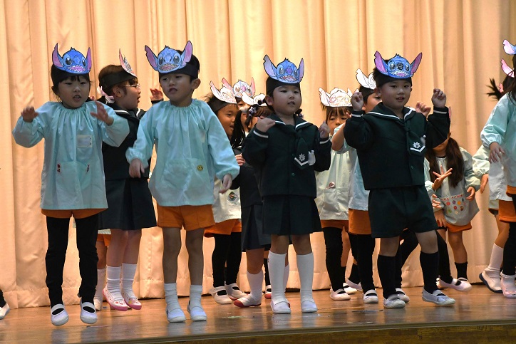 バーニング・ラブ ( 実写版 『リロ&スティッチ』の日本版エンドソング ) の曲に乗って、 〇〇〇組さんの子供たちが 素晴らしい踊りを披露しました。