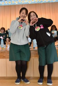 幼稚園の3人の先生が 表彰されました。