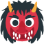 そこへ、 かがり火が煌々と燃える園庭の静寂を打ち破って、 大きな赤鬼と青鬼が現れる。