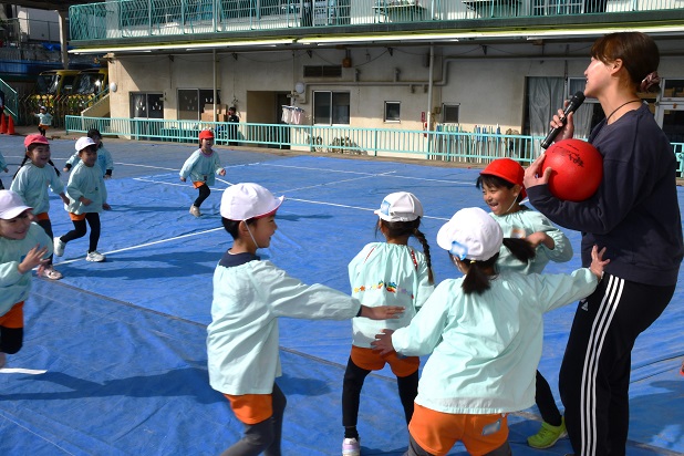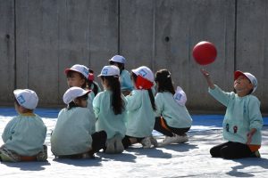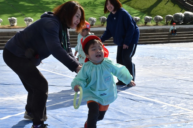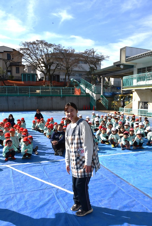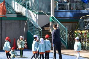 遠くからでも 大きな声で 名前を呼ぶのは、 大抵の場合 ベランダからで、 いつの年でも 年長さんが 呼ぶんだよね。