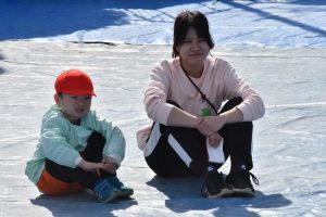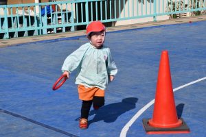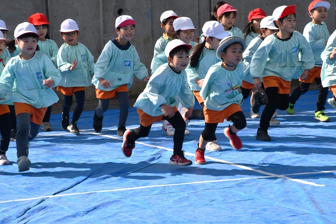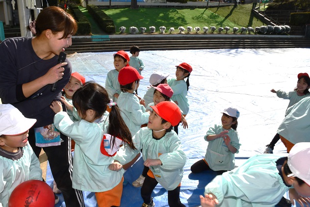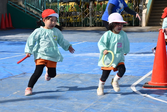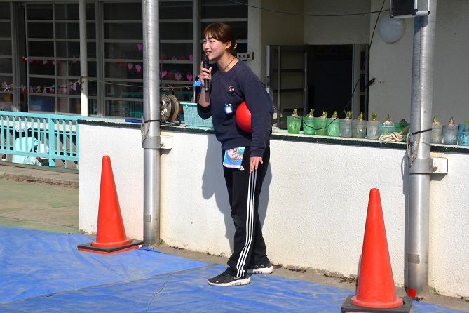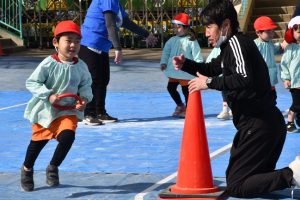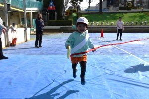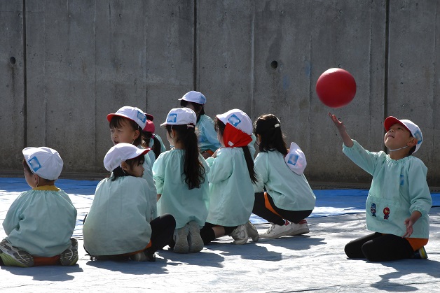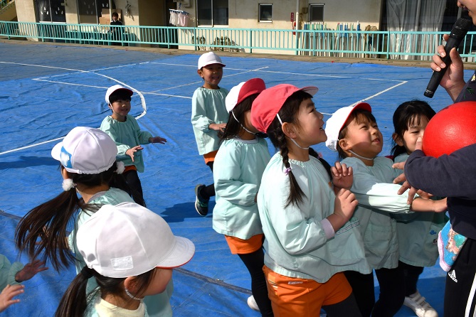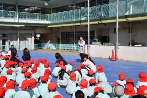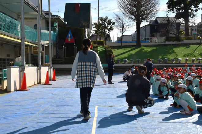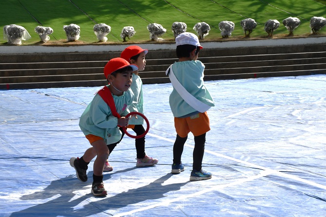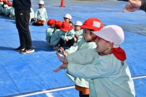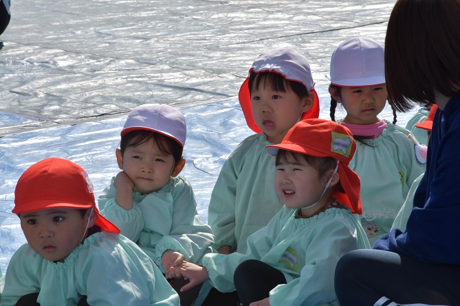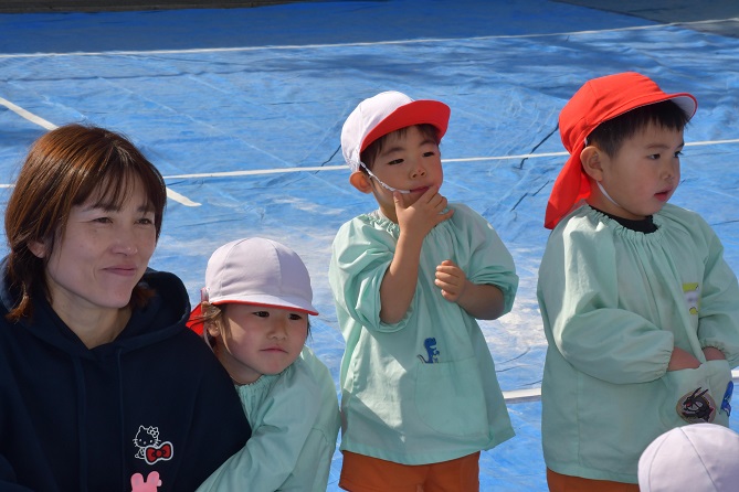 リレーのあとのお話しを、 しっかり聞いている 年少さん。