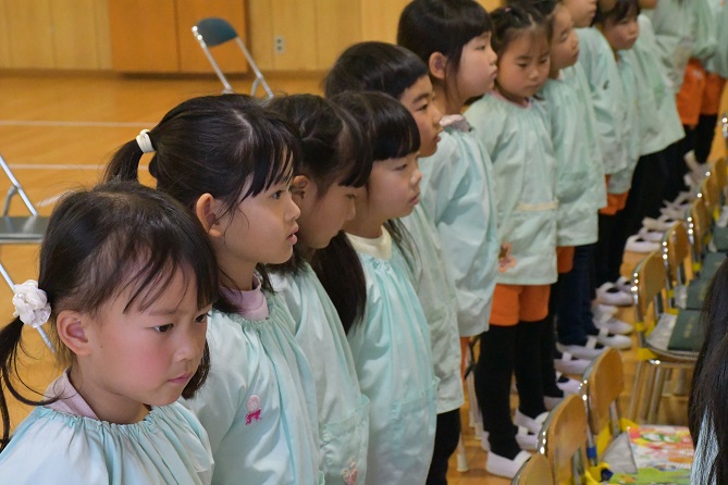 年長さんの証書授与は、 例年に比べてみると ちょっとした違いがあることに気付きました。