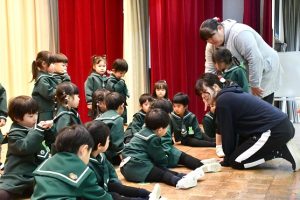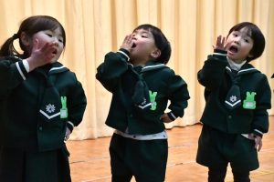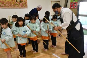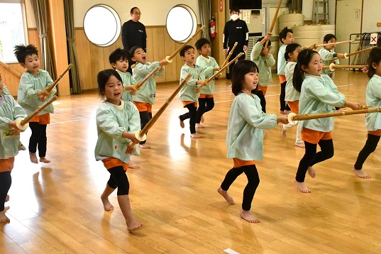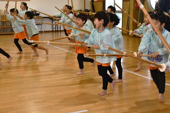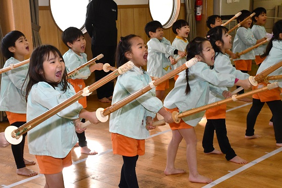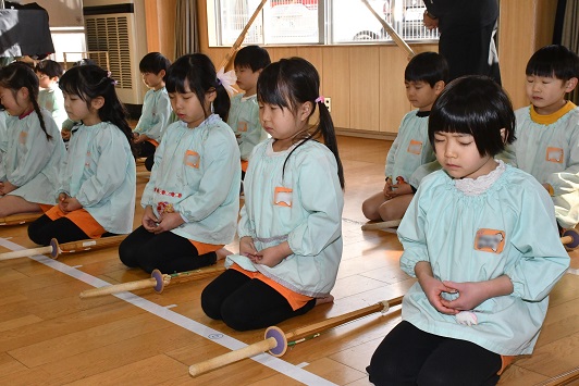 きのう 年長さんは、 書き初めにチャレンジしたばかりですが、 私たち人間の心は 日々の生活の中で 伝統文化や武道に触れたり、 四季折々の風物詩を体験することで、 生きる喜びや幸福感に満たされていくのでしょう。 そして、 年長さんが 生き生きとして、 また伸び伸びと剣道に取り組む姿は、 私たちの希望そのものだと言えます。