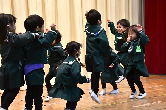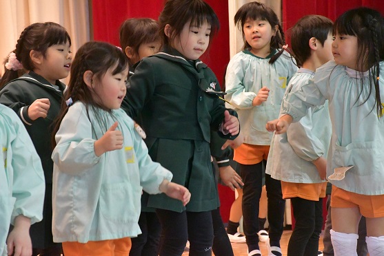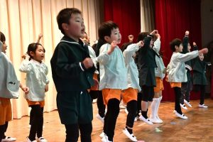 また、 画像からは 舞台さながらの踊りを楽しむ年中〇〇〇〇組さんの様子もうかがえます。