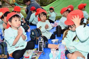去年の年少さんの遠足は暑かったのに対し、 今年( きょう ) の遠足は ちょっと寒かったです。