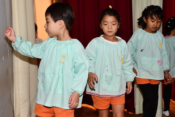 各保育室には明かりが灯され、 その中で 先生たちが しばらくの間 ちびっこ会の準備作業に没頭していました。