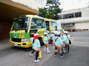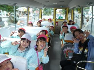 楽しい時間はあっという間に過ぎて、 帰りのバスに乗り込む子どもたちと先生。