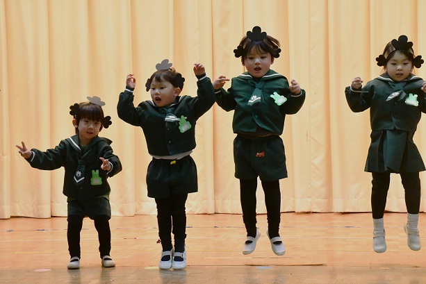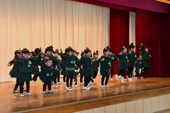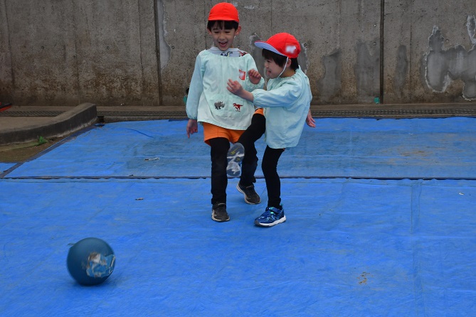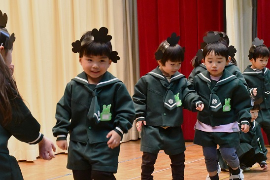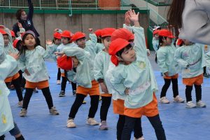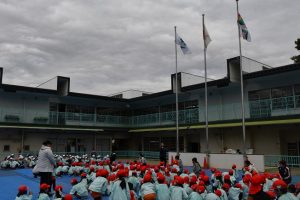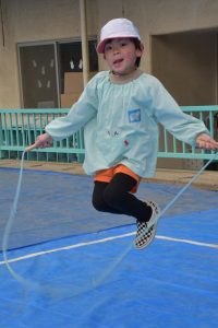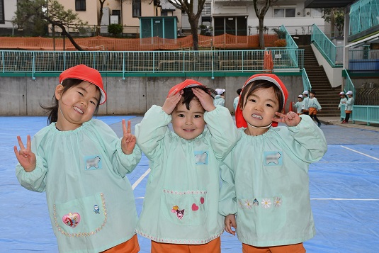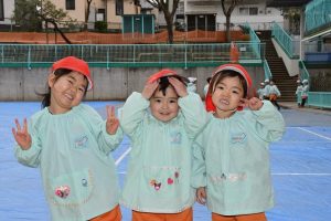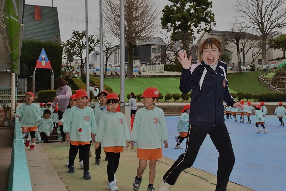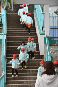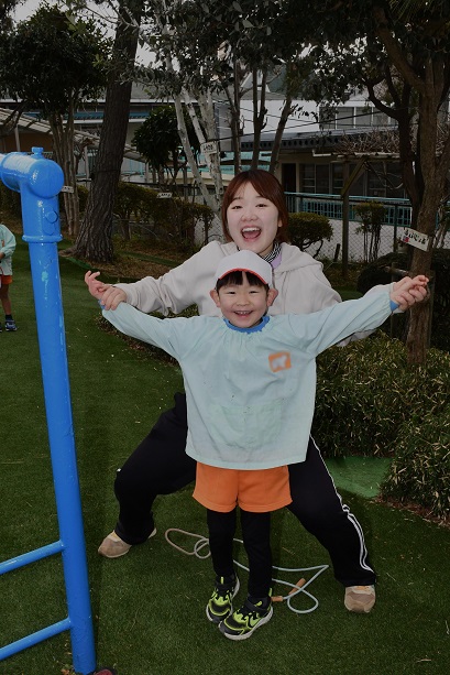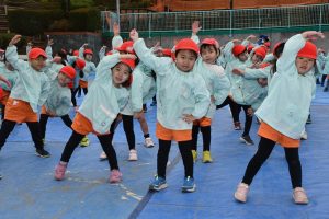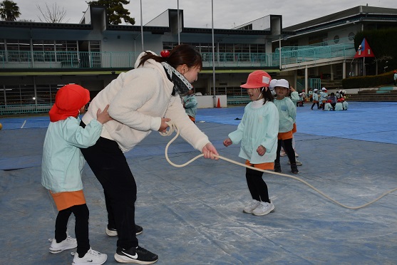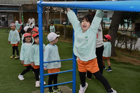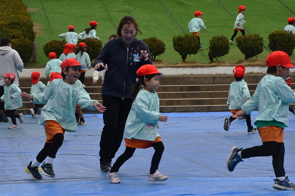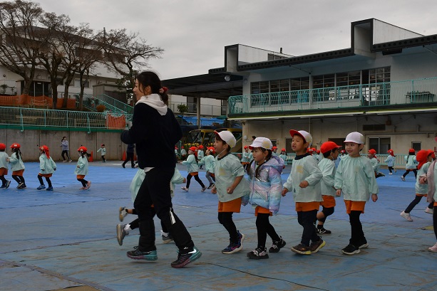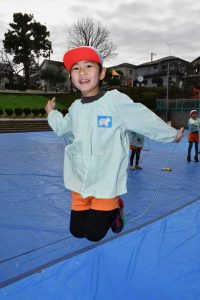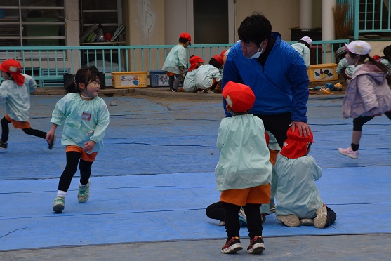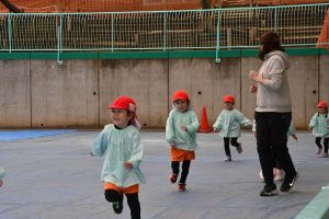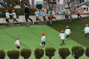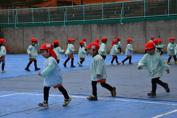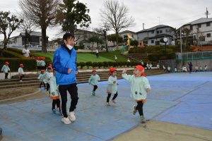 子どもたちは、 冷たい風が吹く中、 元気に園内を走りました。