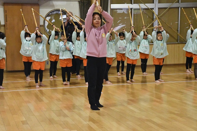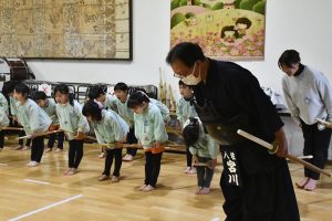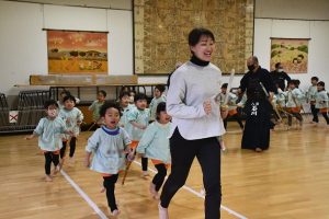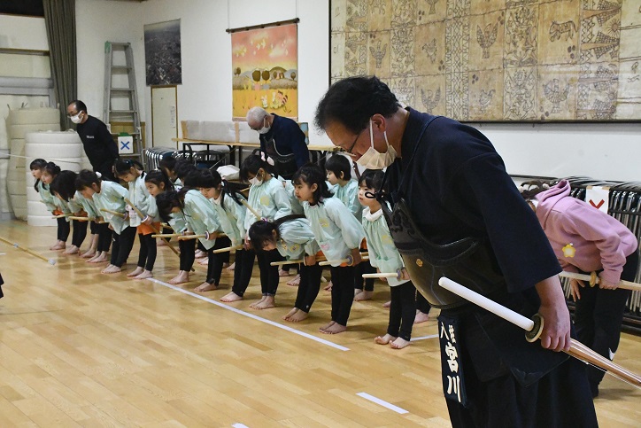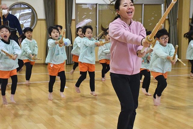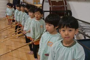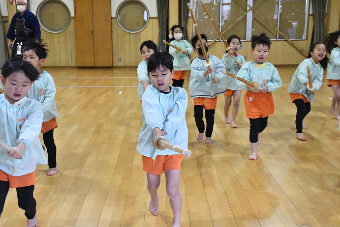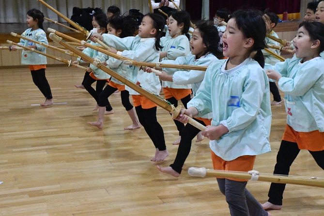 八柱幼稚園では、 年長さんのカリキュラムに 創立以来 剣道が取り入れられています。