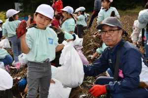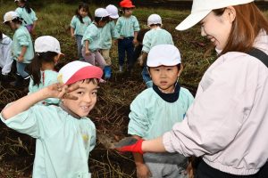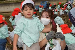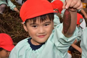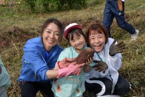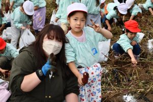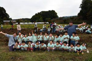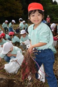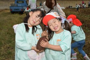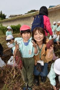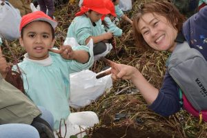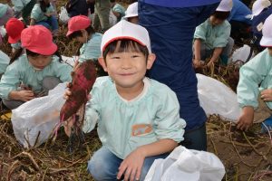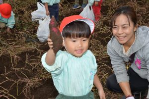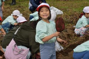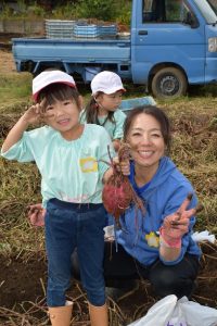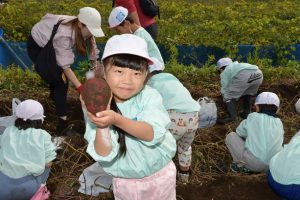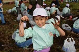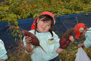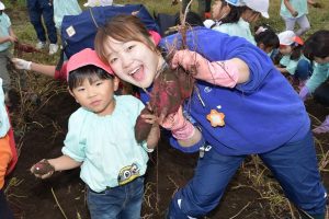 楽しい 「 いもほり 」 の体験は、 園から ほど近い 農園さんの協力で実現しています。