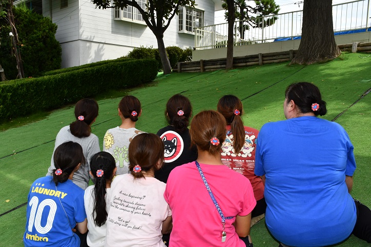 スカイハイの下で休憩中? の 先生たち + 〇〇〇ちゃん