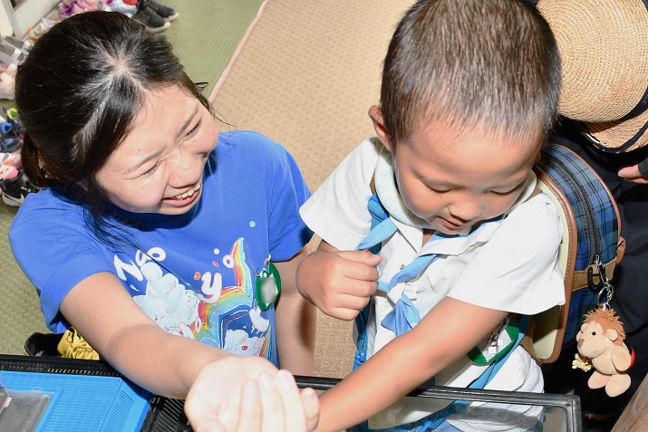 スズムシ君を お手々に乗っけても 意外にへっちゃらだった〇〇君と〇〇先生。
