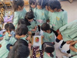 こちらのクラスでも、 楽しいお弁当の時間を過ごしていました。