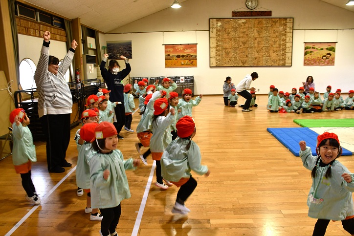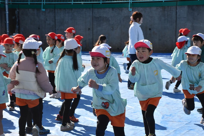 集会の終わりには、 曲に合わせて 3分ちょっとのランニングを行います。