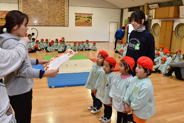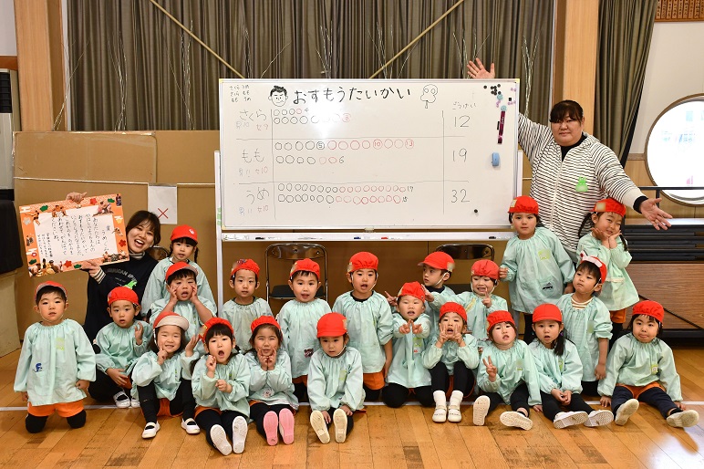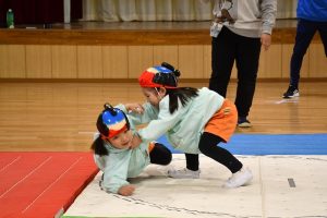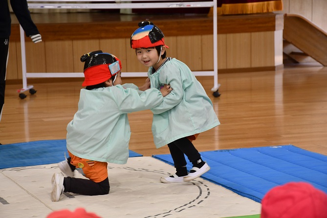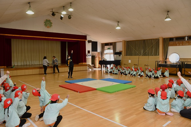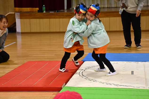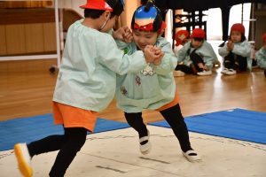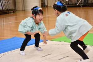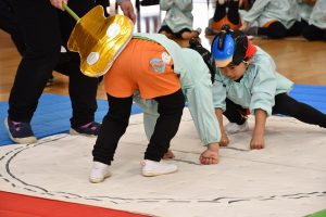 「 みんな~、 きょうは おすもう大会 がんばろ~! 」