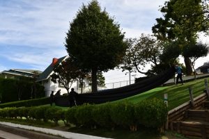 猛暑の今夏、 強烈な日差しから園児たちを守ってくれた スカイ・ハイは、 来年度まで 倉庫の中で眠ります。