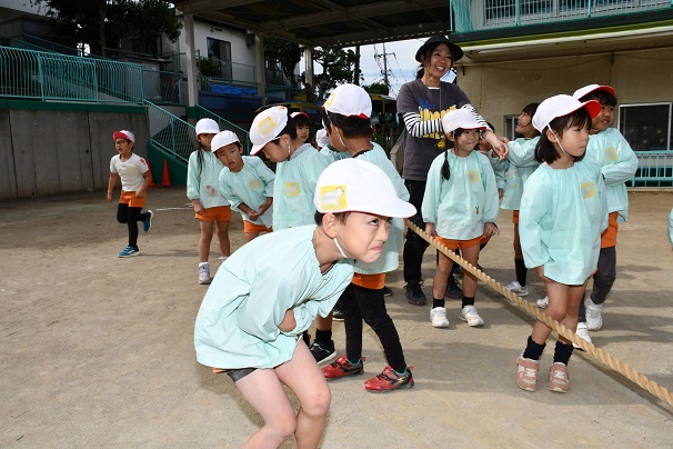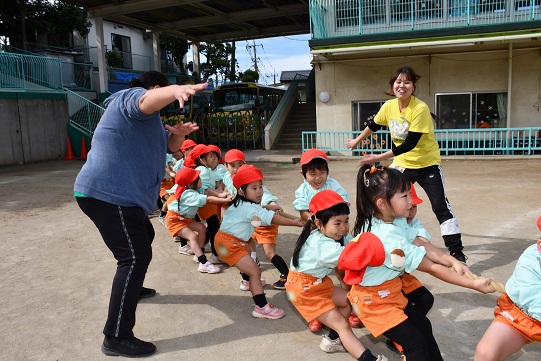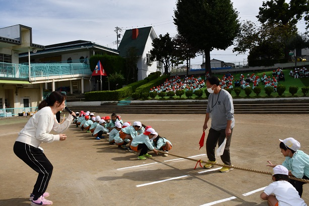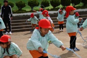 つなひき大会が行われた園庭は、 力のこもった好試合が続き 熱気に包まれました。