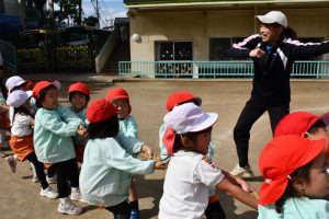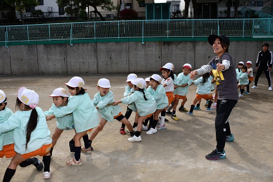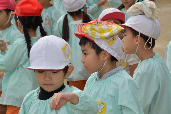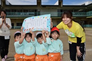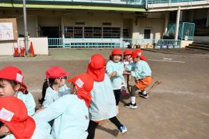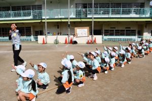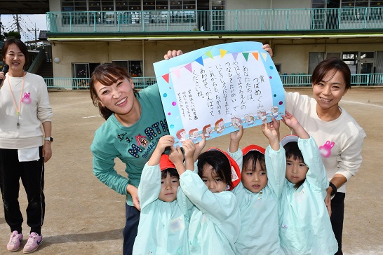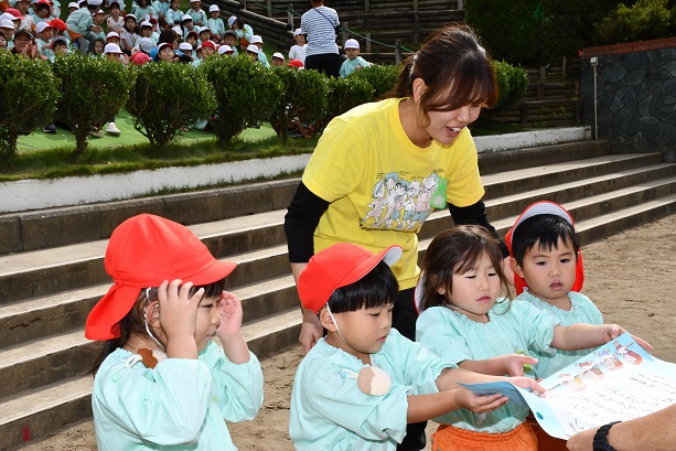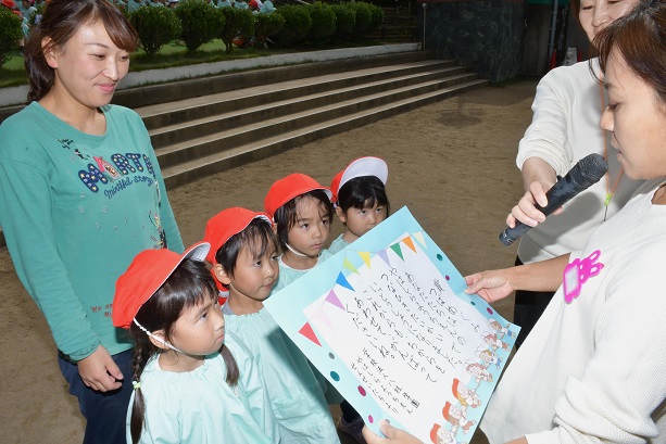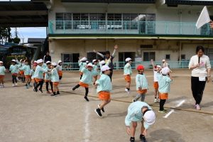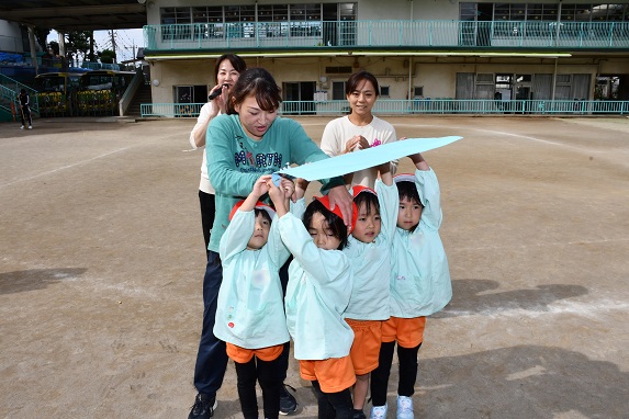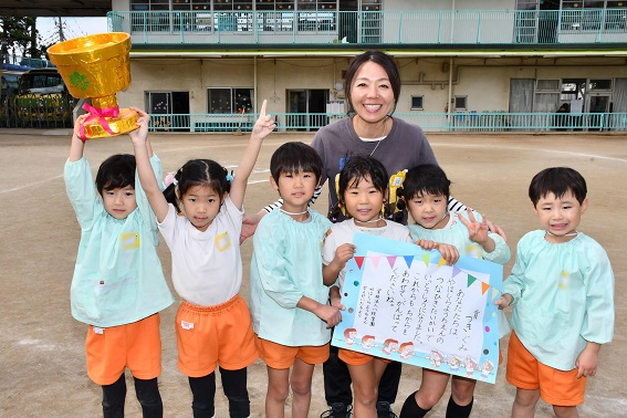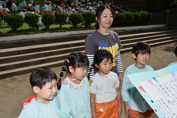 〇〇組さん、 全クラスの代表として 年長児の意地にかけて、 よくがんばりましたね。