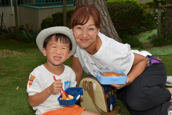 秋の風を感じながら、 芝生でお昼をいただきました。