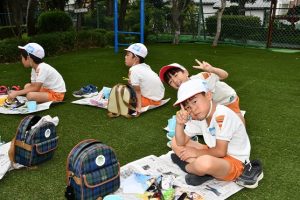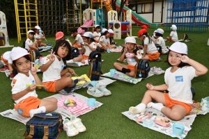 おとといの運動会において、 大勢のお客様で賑わった 観覧席や園庭は、 いつもの幼稚園の風景に戻りました。