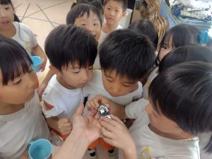 ずっとスズムシのケースの前にはいられないので、 皆さんと なかなかゆっくり スズムシ交流はできませんが、 タイミングが合えば、 えさやりやその他のお世話をしてもらえます。