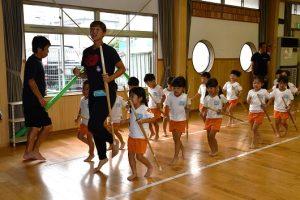 幼稚園創設者の飯沼 誠先生は、 剣道を通して 人として立派に成長して欲しいという願いから、 創立以来 年長さんの剣道を続けて来てくださいました。