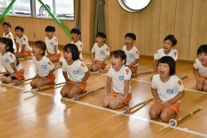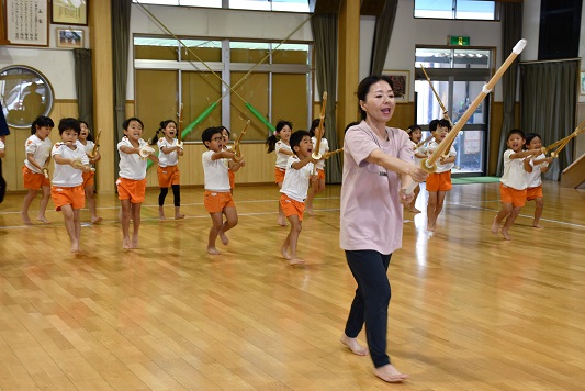 年長さんは、 きょう 久しぶりに剣道を行いました。