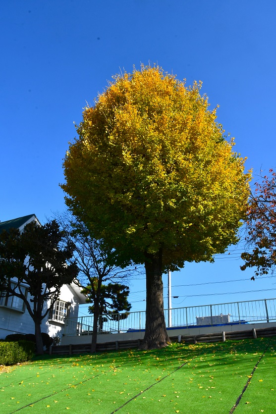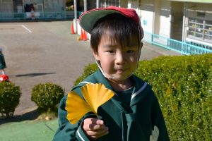 〇〇〇君と、 落ちたばかりのイチョウの葉を拾いました。