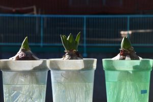 太陽の光を浴びるヒヤシンス