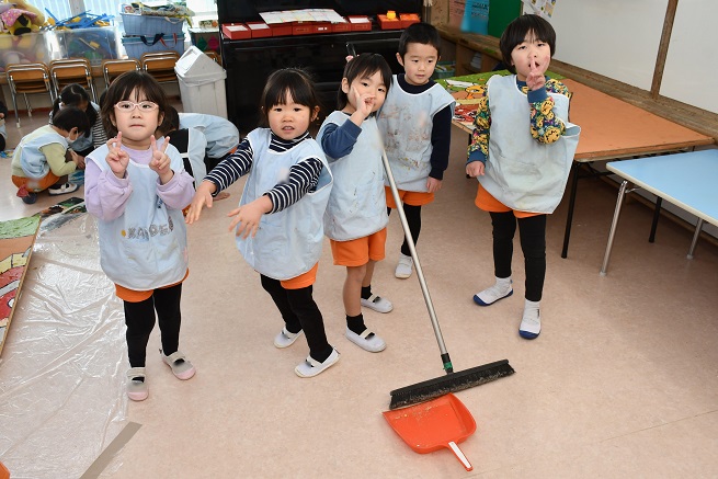 写真にもありますが、 ほうきを持ってお掃除をしている子もいたりと、 大変な作業が続いた中でも、 微笑ましい光景が見られました。