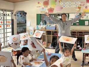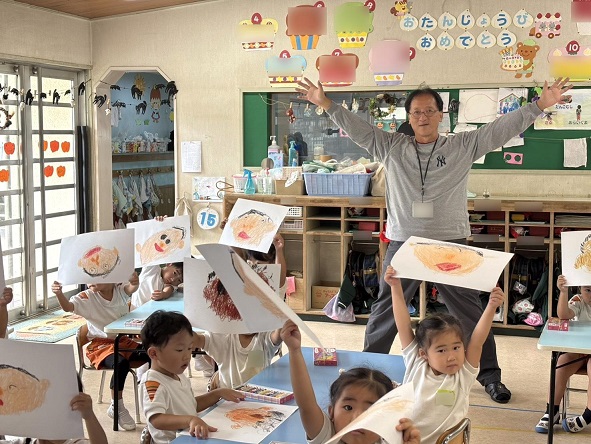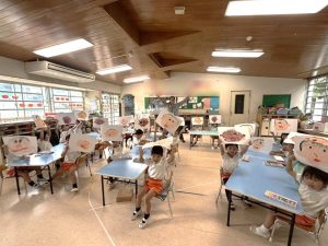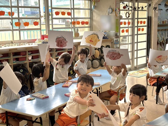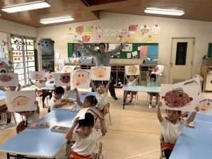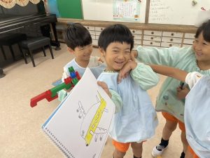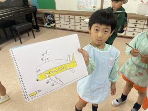 きのう 飛行機の下描きを行った年長さんが、 きょうは 色塗りをして仕上げました。