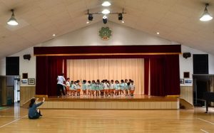忙しい時期ですが、 きょうは 時間を調整して 初めての舞台練習を行いました。