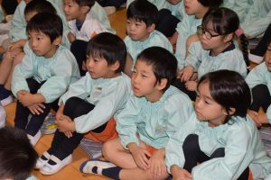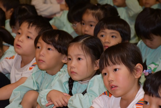集中してお話を聞く 子供たち。