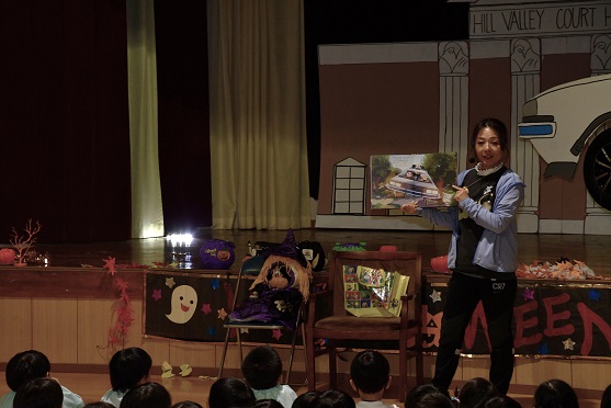 今年度のハロウィンの題材が バックトゥーザフューチャーだったこともあり、 前日 クラスの先生に もう一度借りられるかどうか 頼んでみたんです。