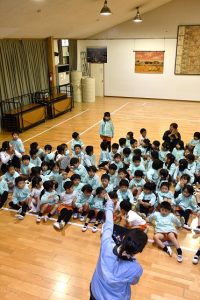 他のクラスにも呼び掛けてもらったところ、 全部で 5クラスの子供たちが急きょ ホールに集まりました。