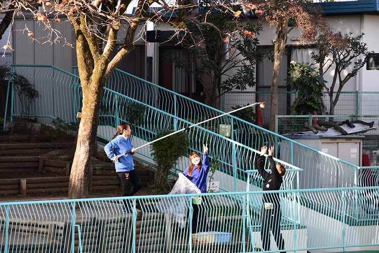 柿を収穫しているのは誰かな?